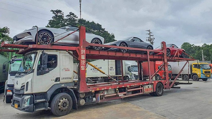 Mẫu xe thể thao hai cửa MG Cyberster đang nằm trên xe vận chuyển được cho là hướng về Việt Nam.
